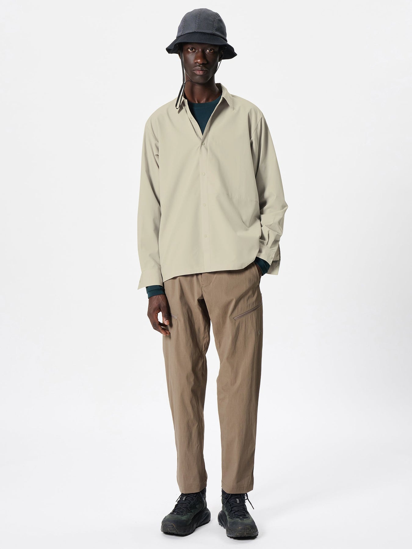 일상복의 감각으로 산이나 다양한 아웃도어 활동을 즐길 수 있는 하이 퍼포먼스 셔츠입니다. 뛰어난 신축성과 통기성을 갖춘 더블 위브 구조의 얇은 원단을 사용했으며 윈드 쉘로도 활용 가능한 기능성과 세련된 디자인을 겸비했습니다.