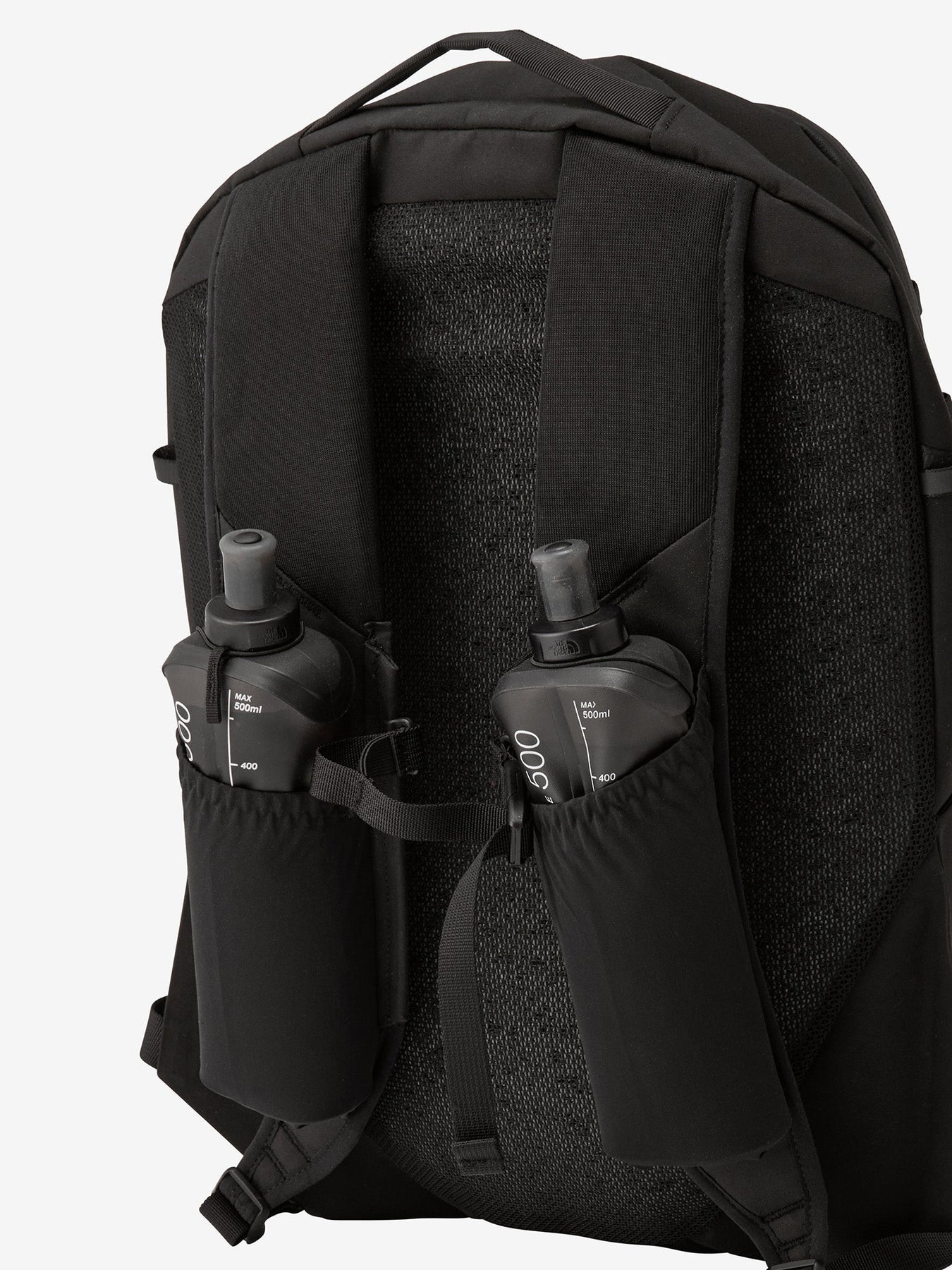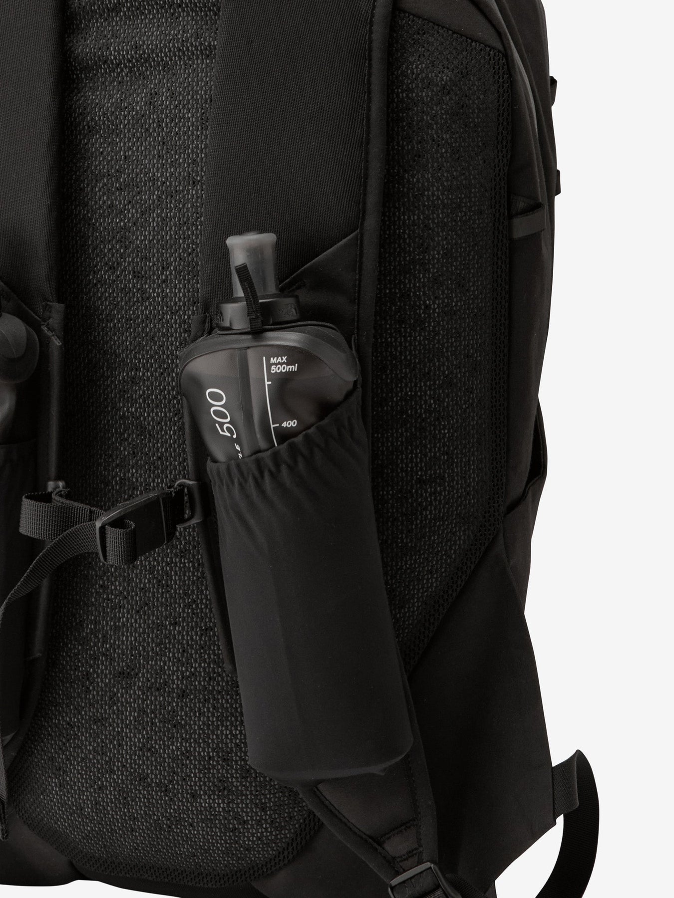 양쪽 사이드에는 트레킹 폴이나 물병을 보관할 수 있는 포켓을, 숄더 하네스에는 별도의 물병 전용 홀더를 마련했습니다. 전면 로고와 번지 코드(*) 연결 루프에는 리플렉티브 디테일을 더해 야간 활동 시 가시성을 높여줍니다.