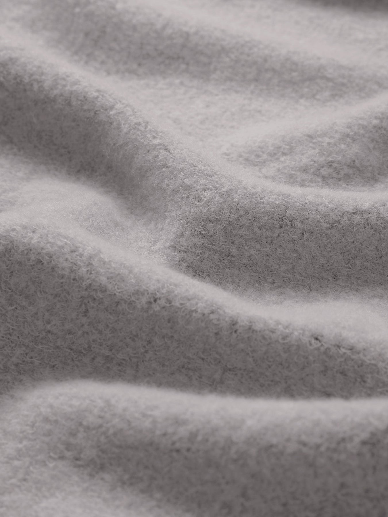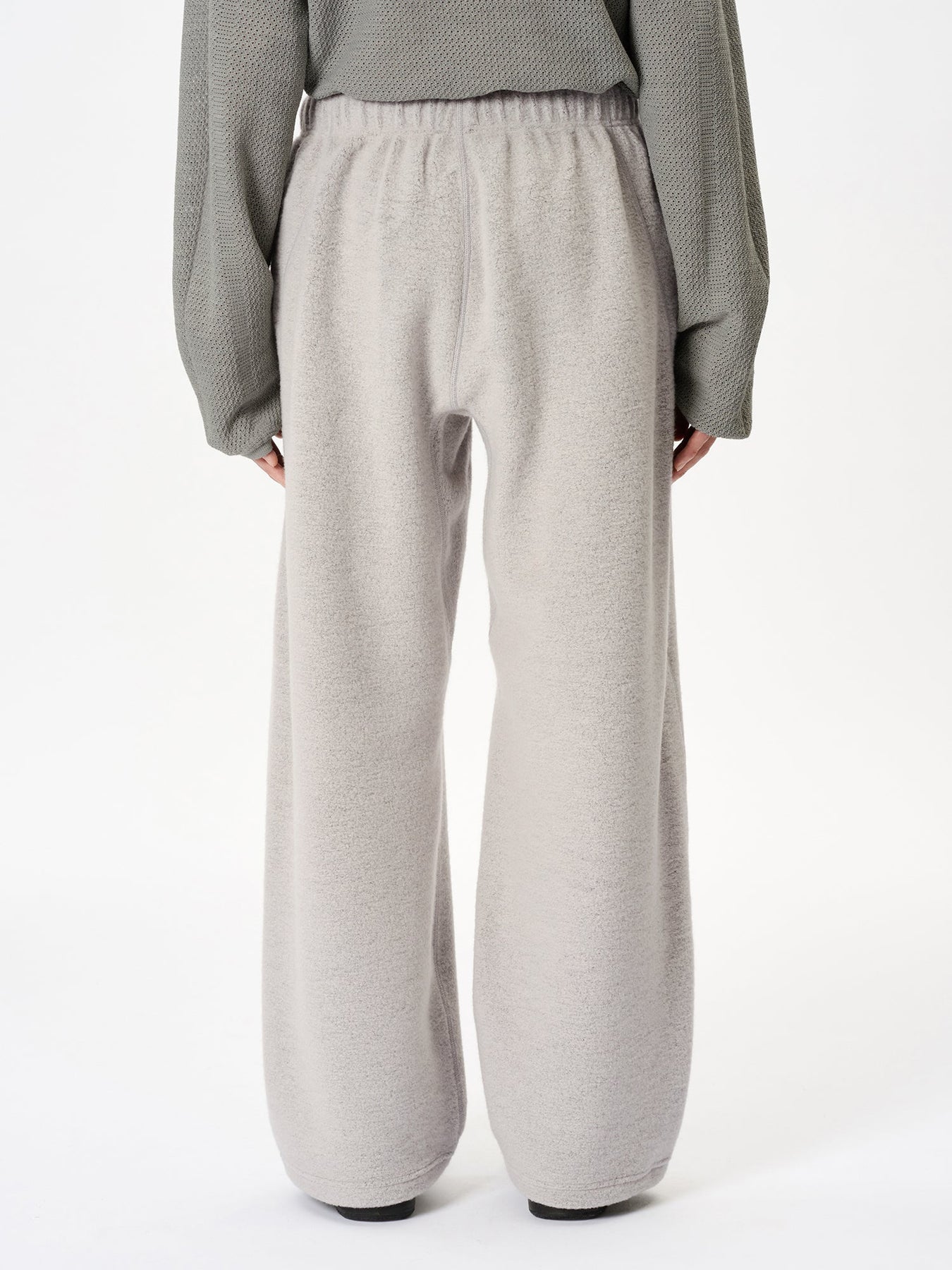 따뜻하고 부드러운 울 플리스 소재로 제작된 릴랙스 핏 조거 팬츠입니다. 독특한 기모감이 느껴지는 원단과 도드라진 절개 라인이 특징이며, 허리와 밑단은 드로코드로 조절할 수 있습니다.