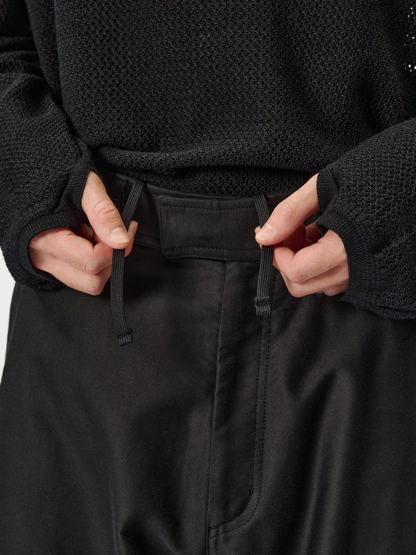 스파이럴 구조로 입체적으로 설계된 와이드 팬츠입니다. 은은한 광택과 부드러운 촉감을 지닌 코튼 실크 모레스킨 소재를 사용했으며, 탄탄한 질감이 특징적인 실루엣을 완성합니다.