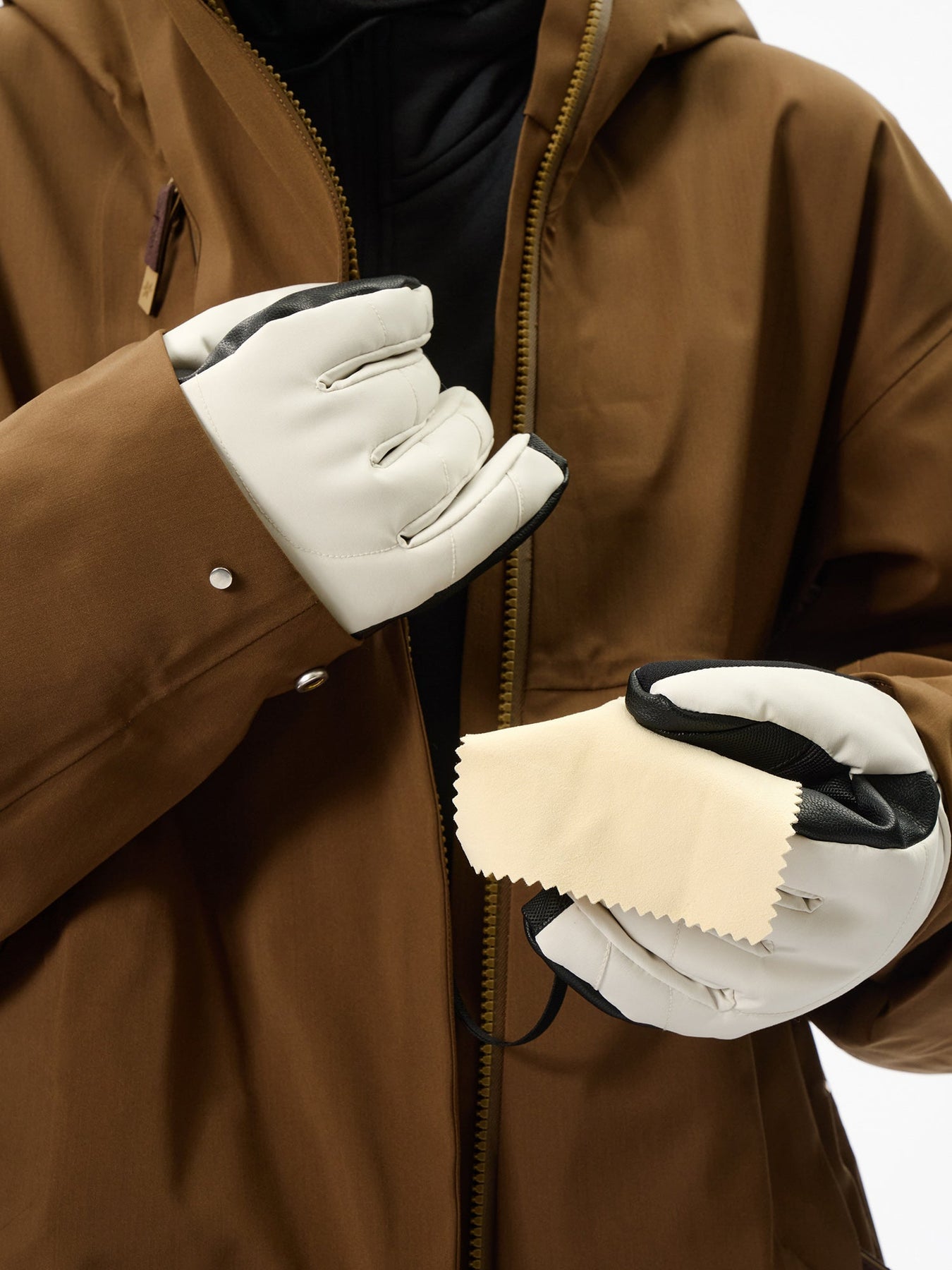 <겉감> 울 40%, 폴리에스터 29%, 나일론 26%, 스판덱스 5% (코팅 또는 기타 수지가공)
