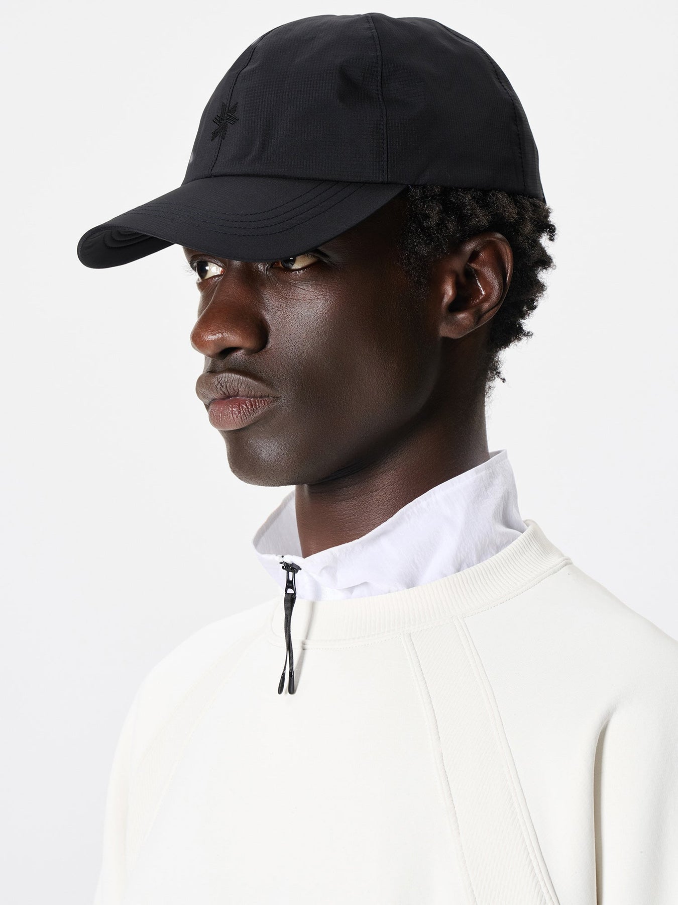 GORE-TEX® products 소재를 사용해 아웃도어급 방수 성능과 도시적인 미니멀 디자인을 결합한 캡입니다.