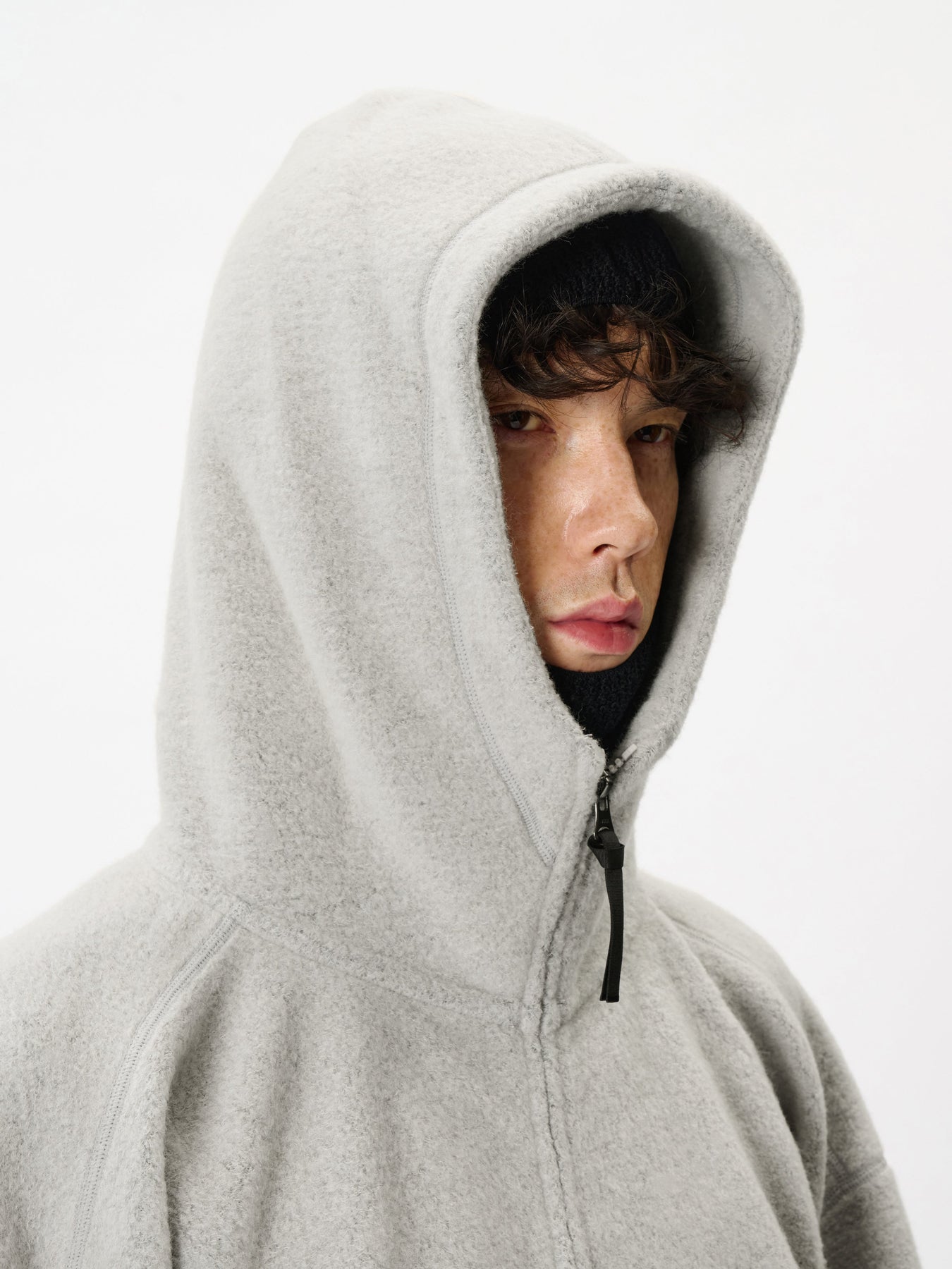 따뜻하고 부드러운 울 플리스 소재로 완성된 릴랙스 핏 후디입니다.
