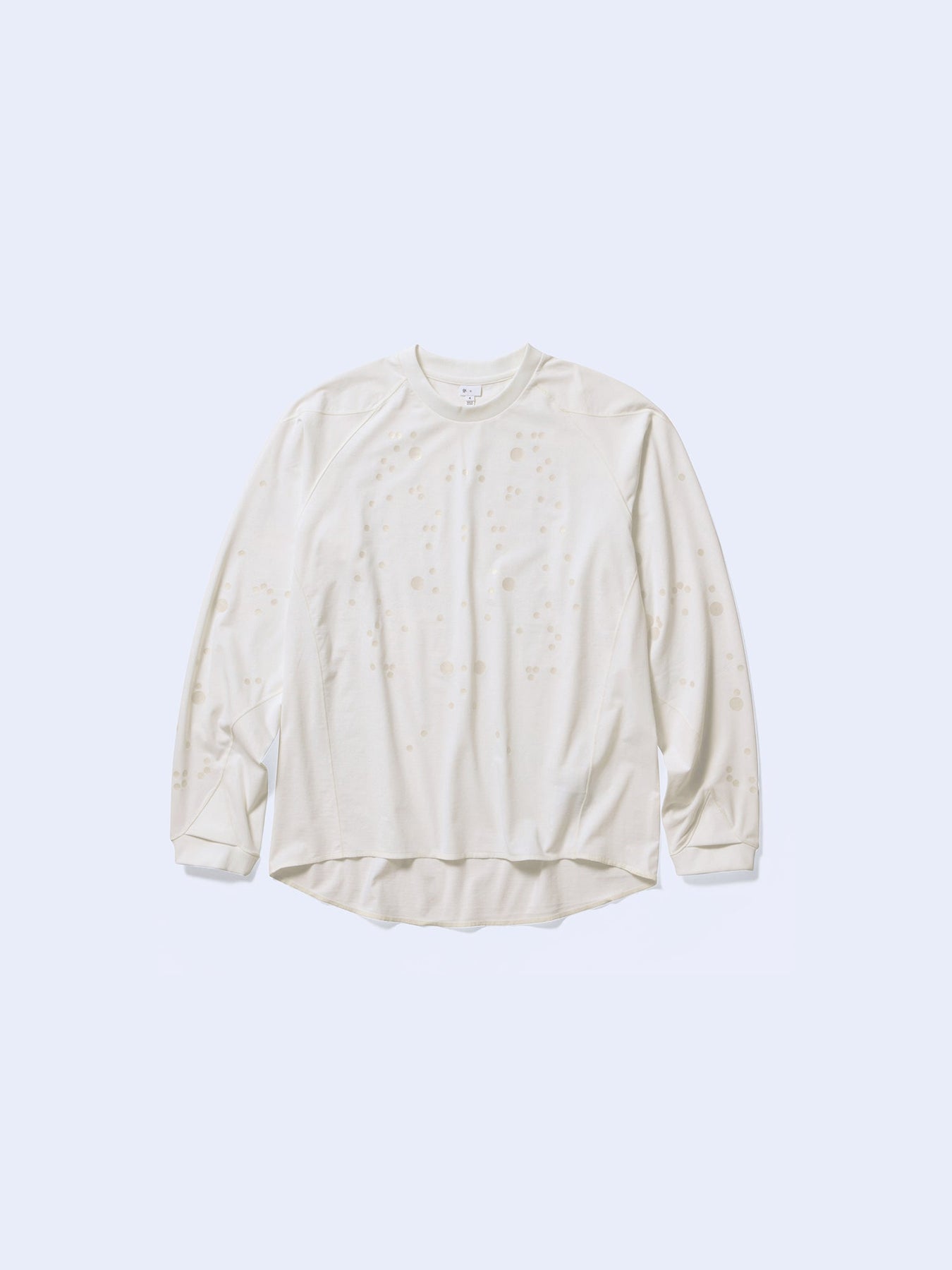 모션 캡처 바디 매핑에서 영감을 얻은 리플렉티브 도트 프린트를 적용한 티셔츠입니다. 이지 케어 마감의 폴리에스터 100% 소재로 제작되어, 매끄러운 촉감과 드레이프감이 조화를 이루며 부드럽고 세련된 실루엣을 완성합니다.