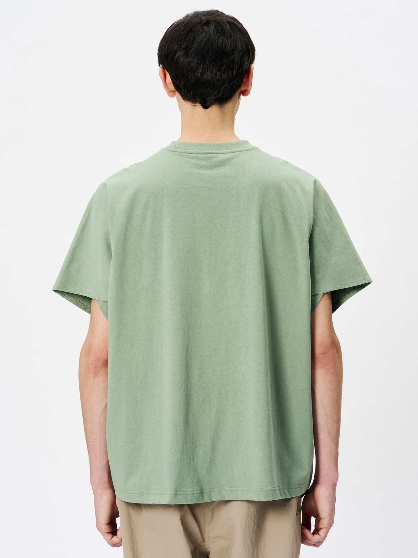 심리스 튜블러 원단을 적용한 티셔츠로, 소매를 회전 구조로 바디에 일체형으로 통합한 원피스 디자인이 특징입니다. 봉제선을 최소화하여 활동성을 높였으며, 독창적인 착용감을 제공합니다.