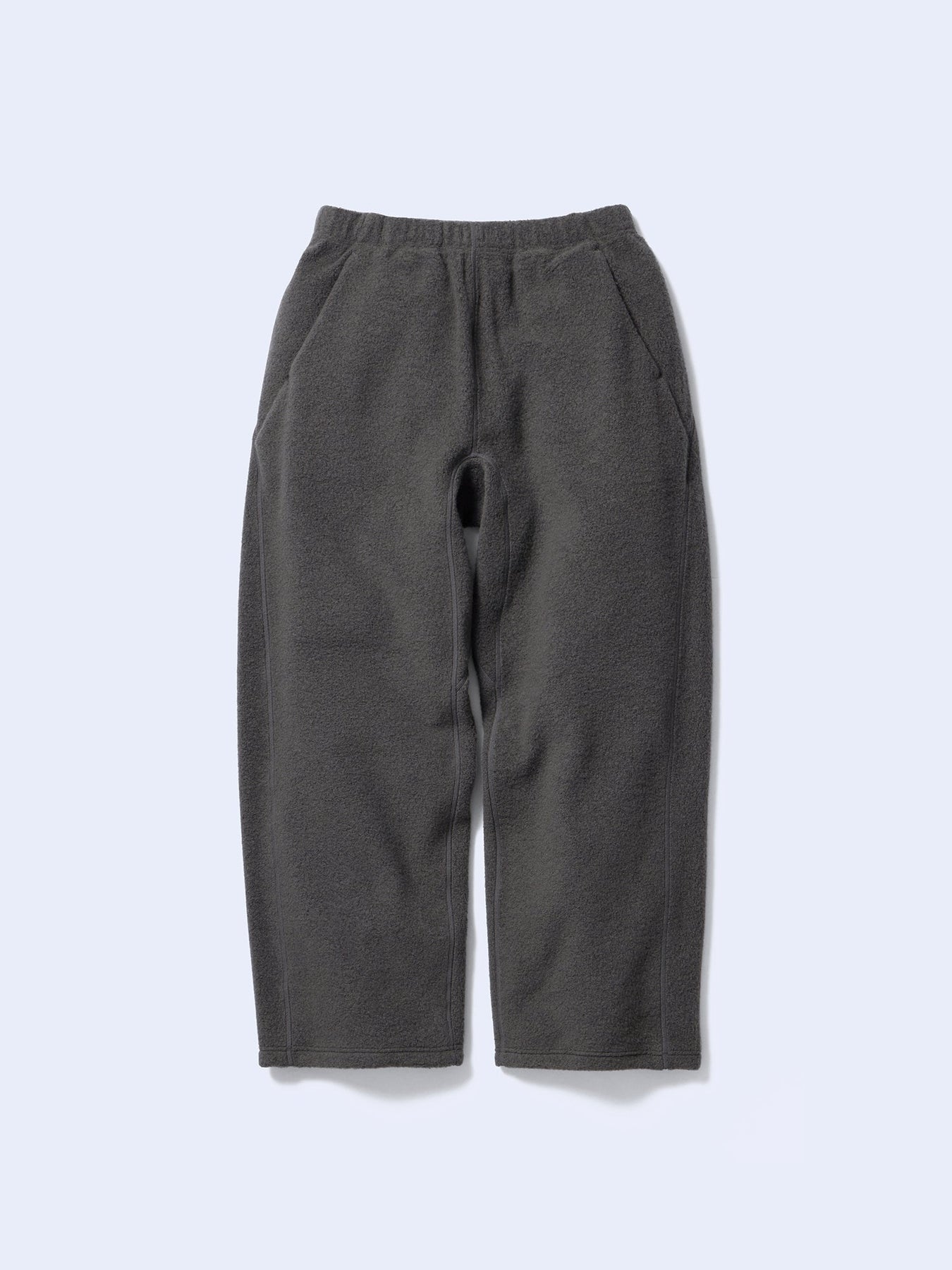 따뜻하고 부드러운 울 플리스 소재로 제작된 릴랙스 핏 조거 팬츠입니다. 독특한 기모감이 느껴지는 원단과 도드라진 절개 라인이 특징이며, 허리와 밑단은 드로코드로 조절할 수 있습니다.