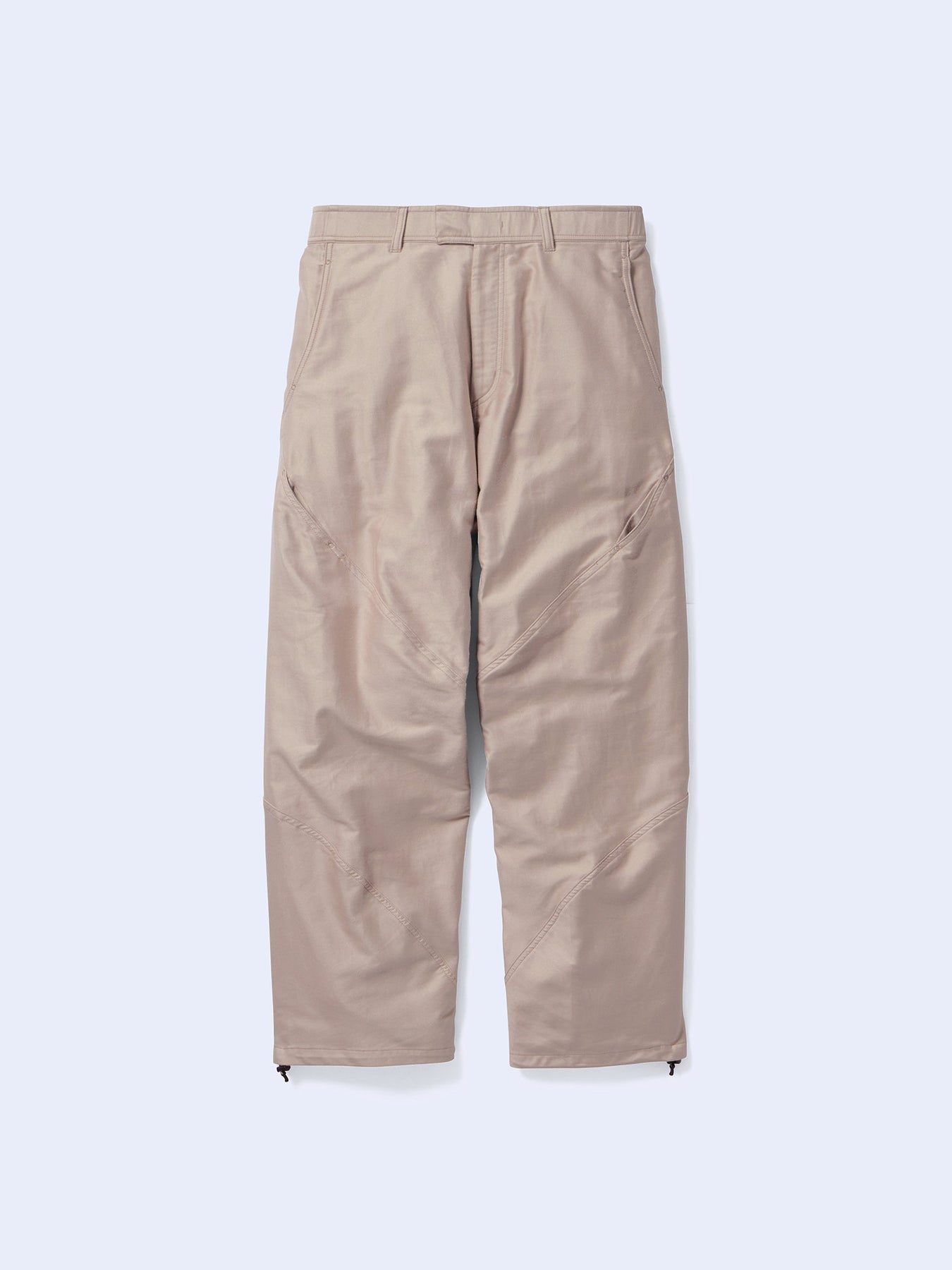스파이럴 구조로 입체적으로 설계된 와이드 팬츠입니다. 은은한 광택과 부드러운 촉감을 지닌 코튼 실크 모레스킨 소재를 사용했으며, 탄탄한 질감이 특징적인 실루엣을 완성합니다.