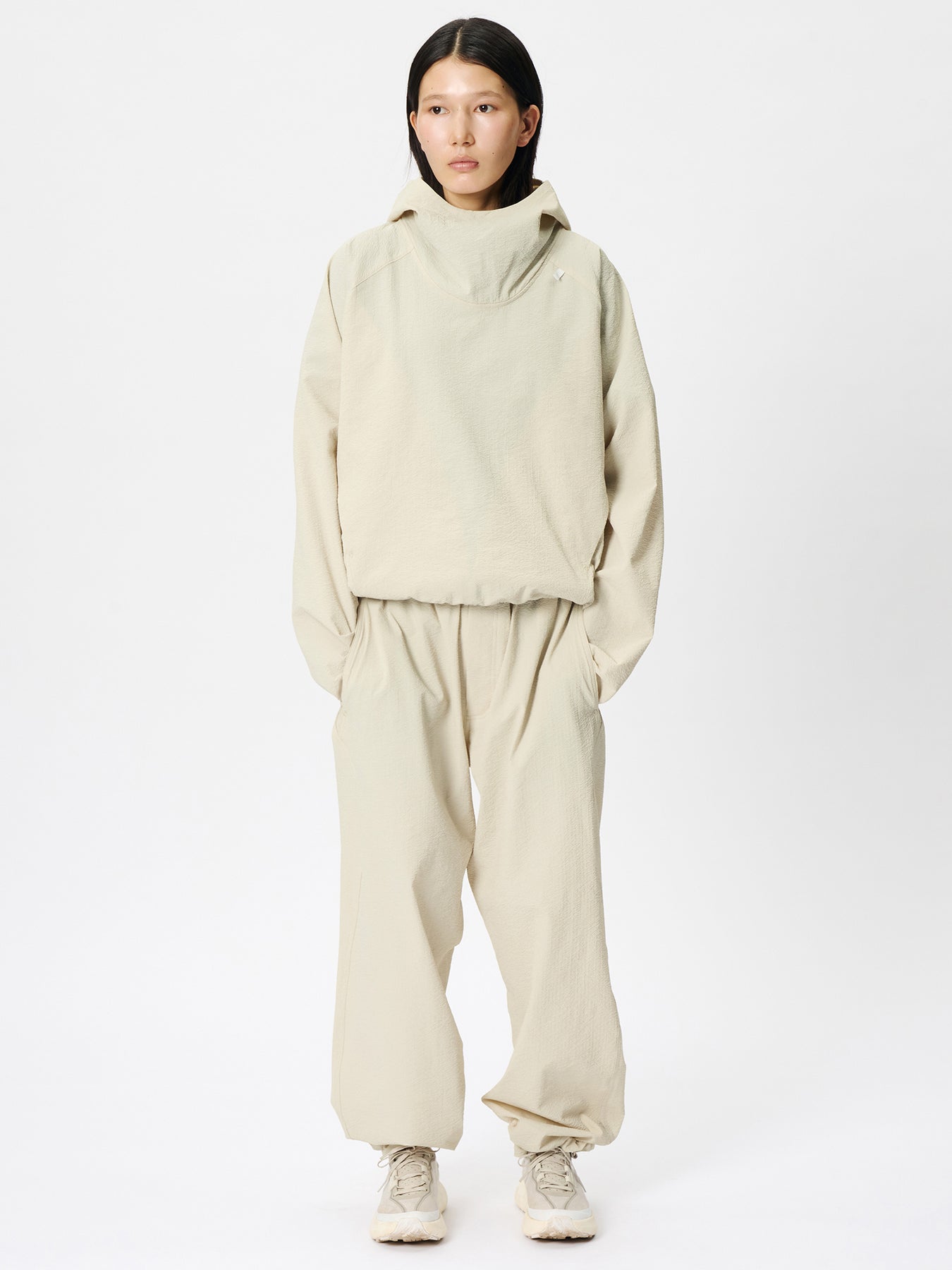 미세한 물결 형태의 리플 텍스처가 특징인 원단을 사용한 팬츠입니다. 흡한속건 기능에 더해 UV 프로텍트(UPF50+, 자외선 차단율 95% 이상) 기능을 갖추었습니다. 바람을 머금는 릴랙스 실루엣과 피부에 닿는 면적을 최소화한 원단 구조로, 강한 햇빛 아래에서도 쾌적하게 착용할 수 있습니다. 동일 원단의 스터프 색이 포함되어 제품을 컴팩트하게 수납할 수 있습니다.