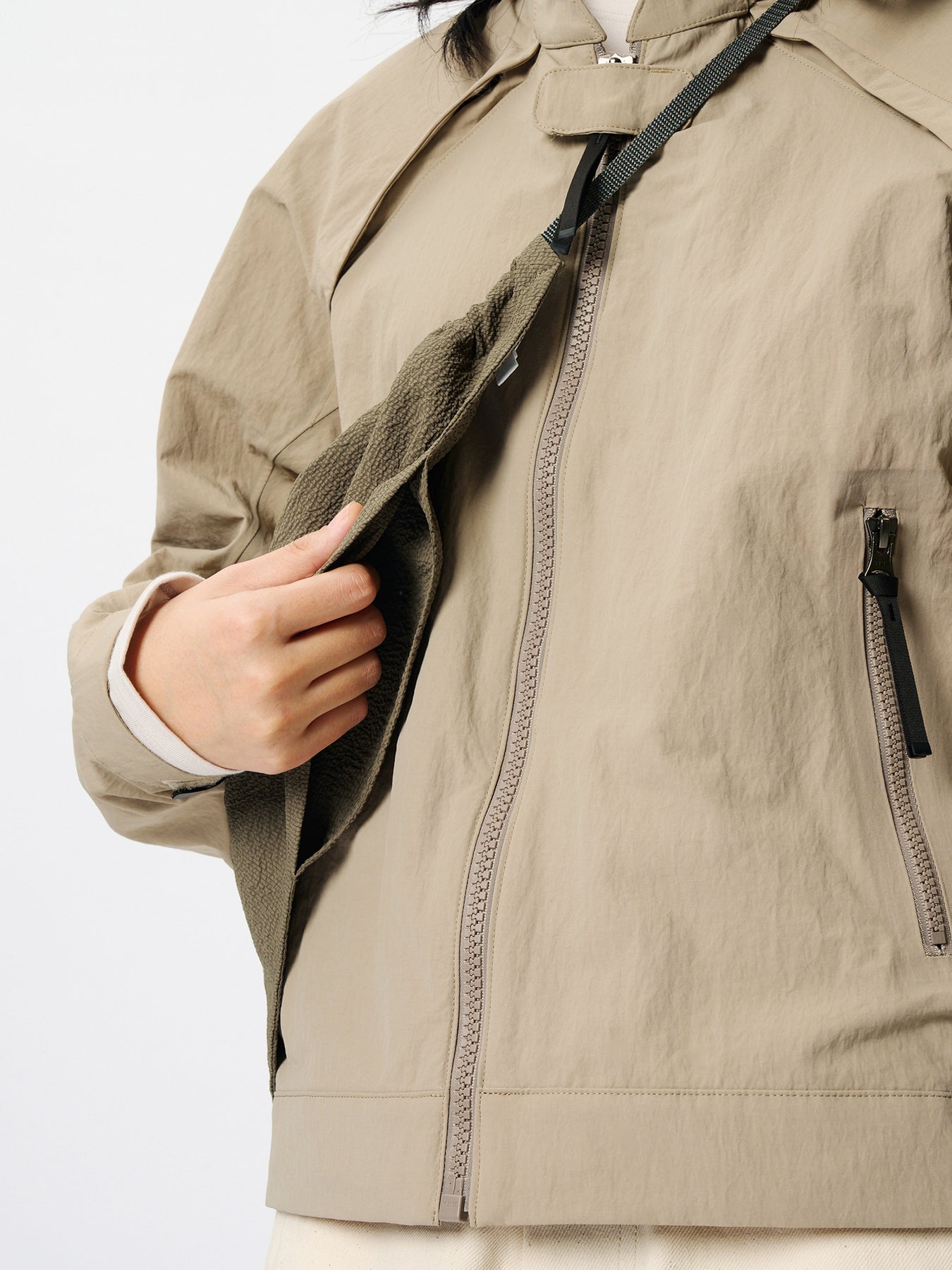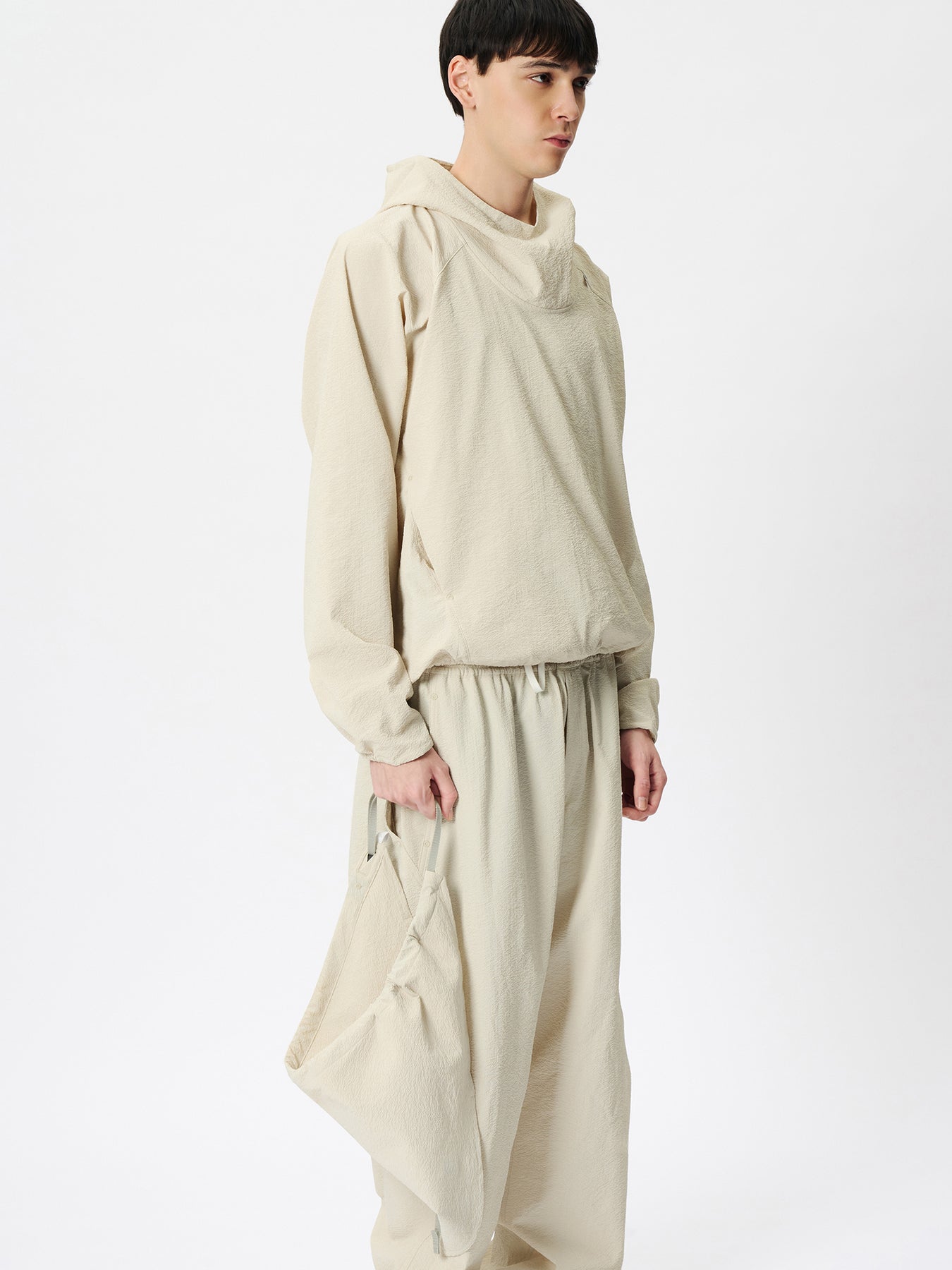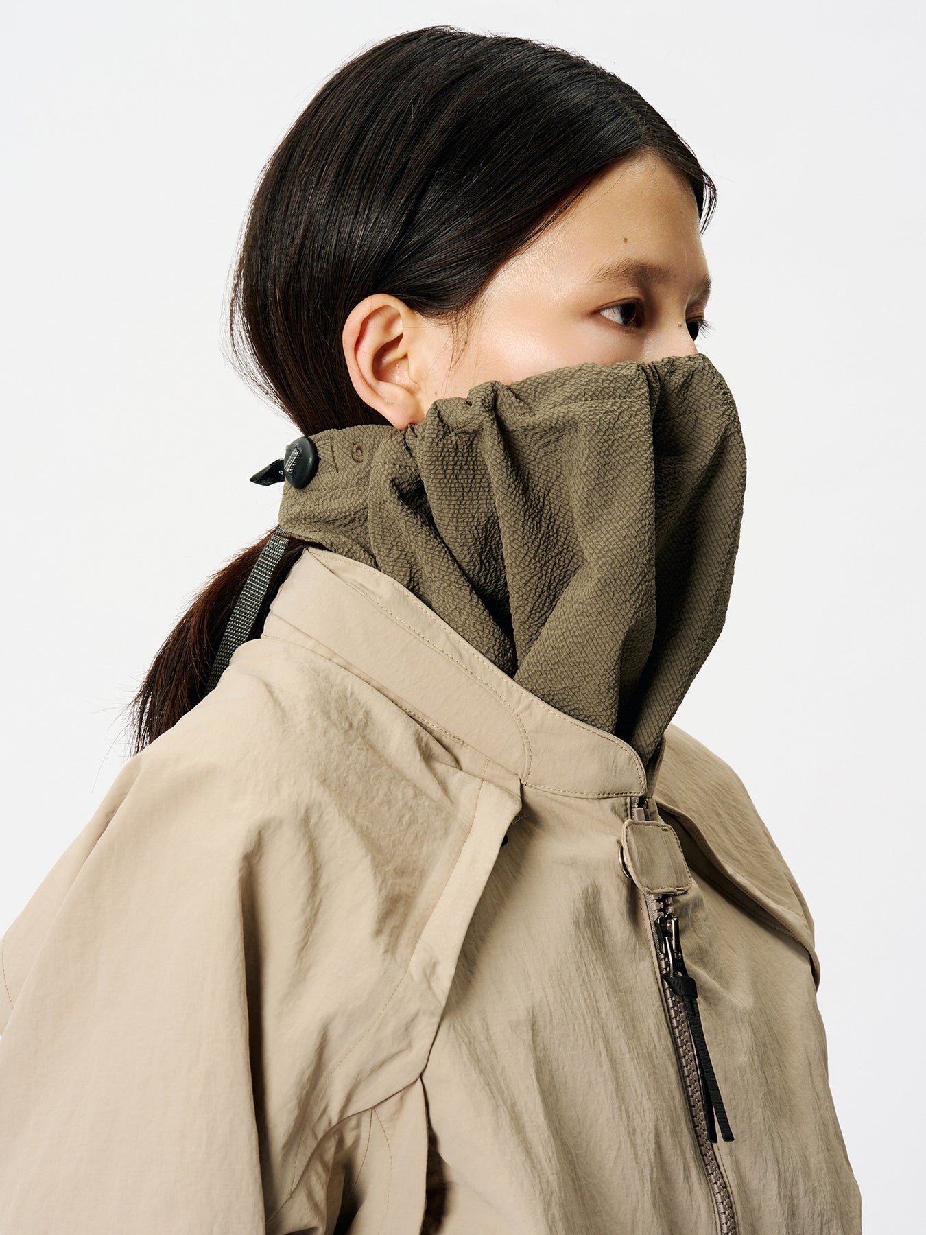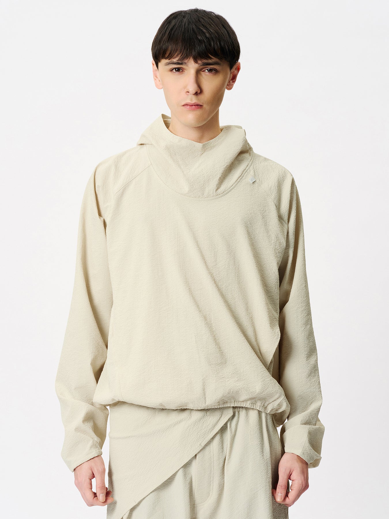 미세한 물결 형태의 리플 텍스처가 돋보이는 원단을 사용한 멀티 아이템으로, 반다나와 파우치 두 가지 방식으로 활용할 수 있습니다. 흡습·속건 기능에 더해 UV 프로텍트(UPF50+, 자외선 차단율 95% 이상) 기능을 갖추어 강한 햇빛 아래에서도 반다나로 사용하기에 적합합니다. 내부는 수납 공간으로 설계되어 컴팩트한 파우치로도 활용 가능합니다.